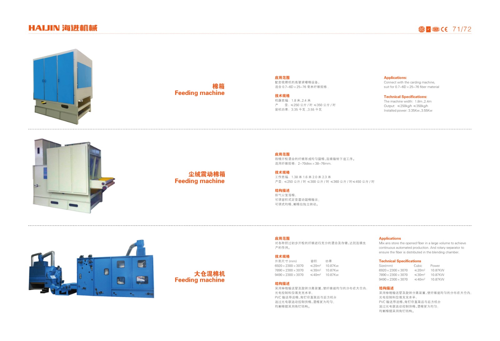電機功率:錫林:22KW,道夫2.2KW,喂入0.75KW